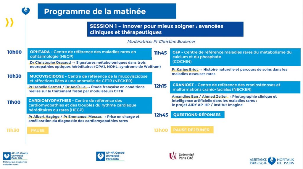 Ces interventions ont été complétées par une présentation d’Anne-Sophie Jannot, de la Banque nationale de données maladies rares (BNDMR), sur la valorisation des données de santé et ce qu’elles révèlent sur les parcours de soins.